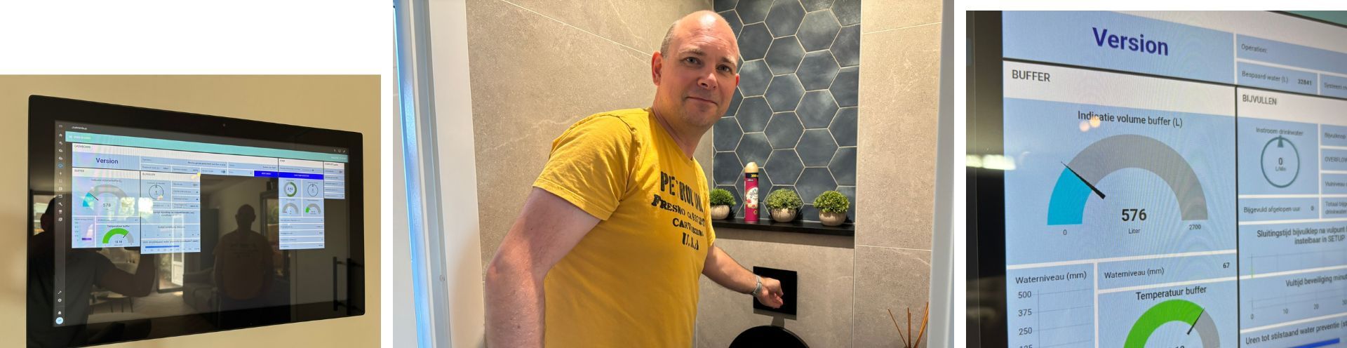 De zak is 4,50 meter lang, 1,50 meter breed en een halve meter hoog. Met een mooie app kan hij precies zien hoeveel water in het reservoir zit. Sinds de aanleg in september 2024 heeft Mark in 10 maanden al ongeveer 33.000 liter drinkwater bespaard!